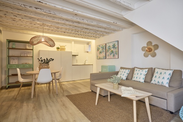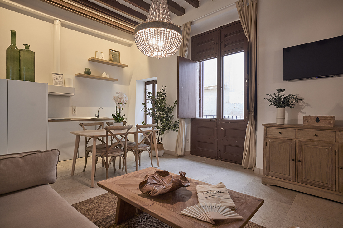 Para vivir una experiencia única, nuestros apartamentos tipo suite están ubicados en las plantas superiores y se distribuyen en un solo nivel, ofreciendo 55 metros cuadrados de espacio. Podrás disfrutar de la experiencia de alojarte en el casco antiguo de la ciudad con todas las comodidades de un hogar, incluyendo una cocina integrada, un salón-comedor y un amplio dormitorio.